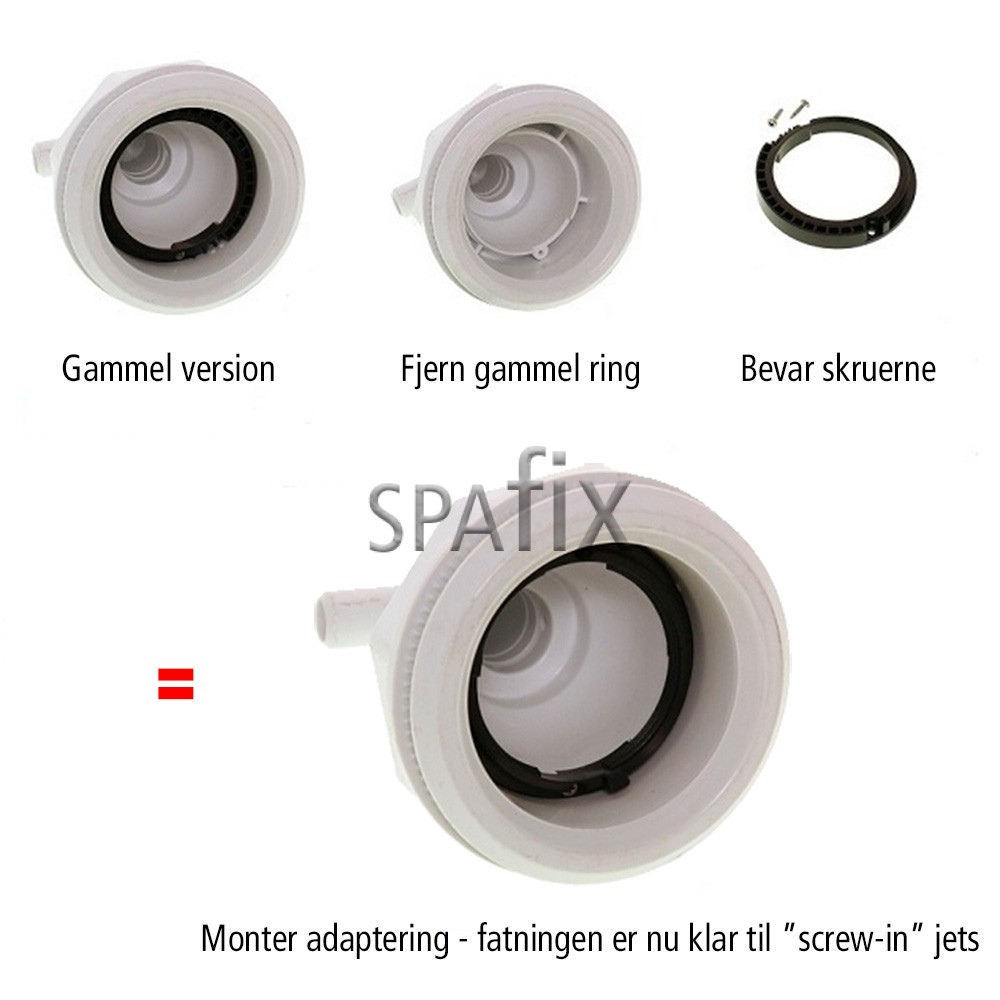 Rising Dragon screw-in adapter for 5 inch dyser passer ind i fatninger på ældre Arctic Spas (før 2012) og andre spabade, der bruger Rising Dragon-dyser. Den giver dig mulighed for at konvertere fra clip-in dyser til screw-in dyser.
