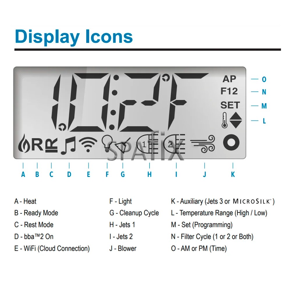 | Option | Ingen overlay, Jets, Aux, Flip, Jets 1, Jets 2, Aux, Jets 1, Jets 2, Jets 3, Temp, Light, Aux |