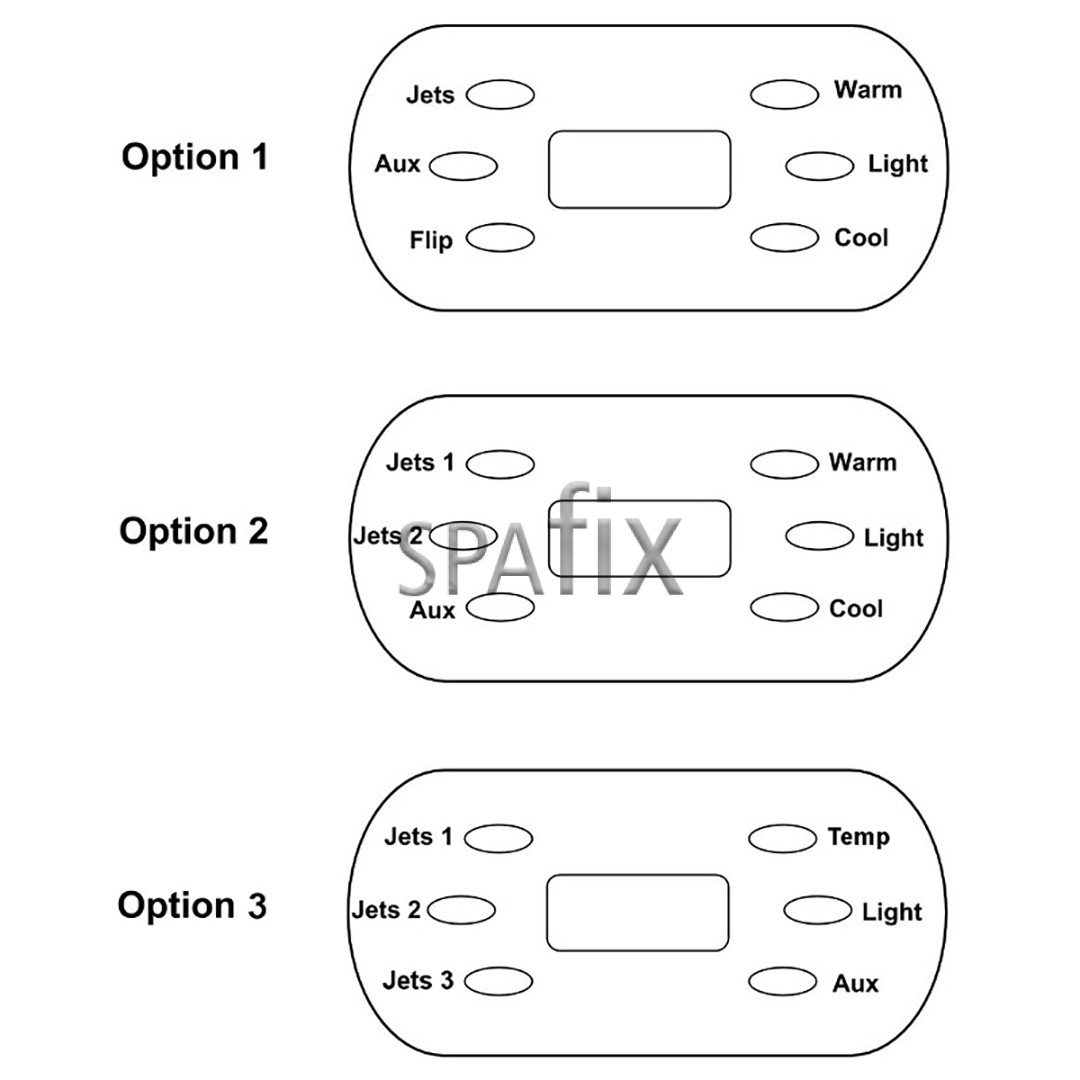 - Option 3: Jets 1, Jets 2, Jets 3, Temp, Light, Aux