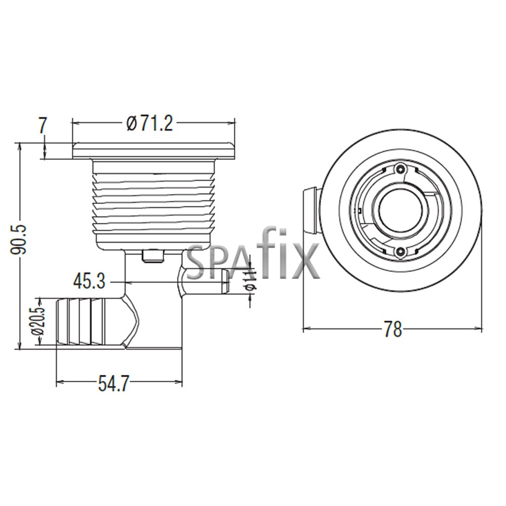 Denne LVJ dysefatning (også kaldet jet-hus) bruges til montering af alle LVJ 3″ spa-jets. Fatningen monteres på både indvendig og udvendig side af spaens kar og holder jetten sikkert på plads. Der medfølger fastgørelsesmøtrik og pakning.