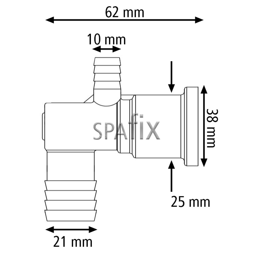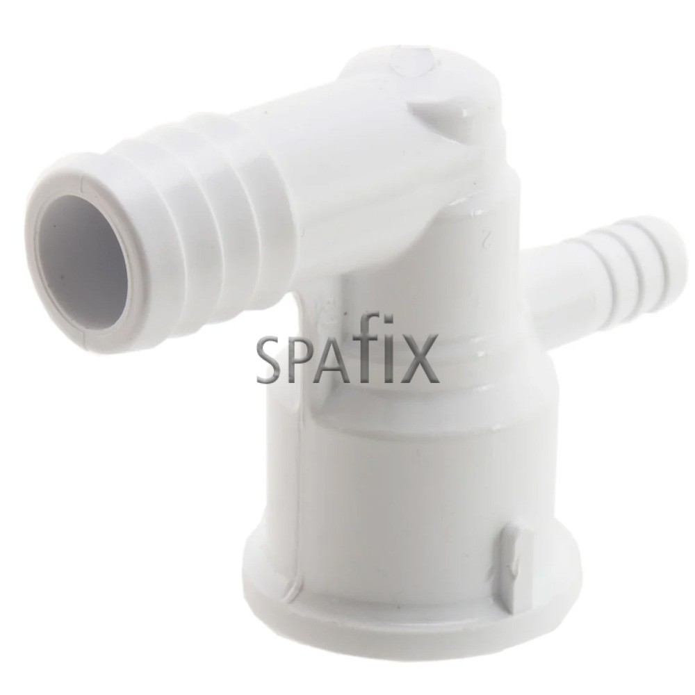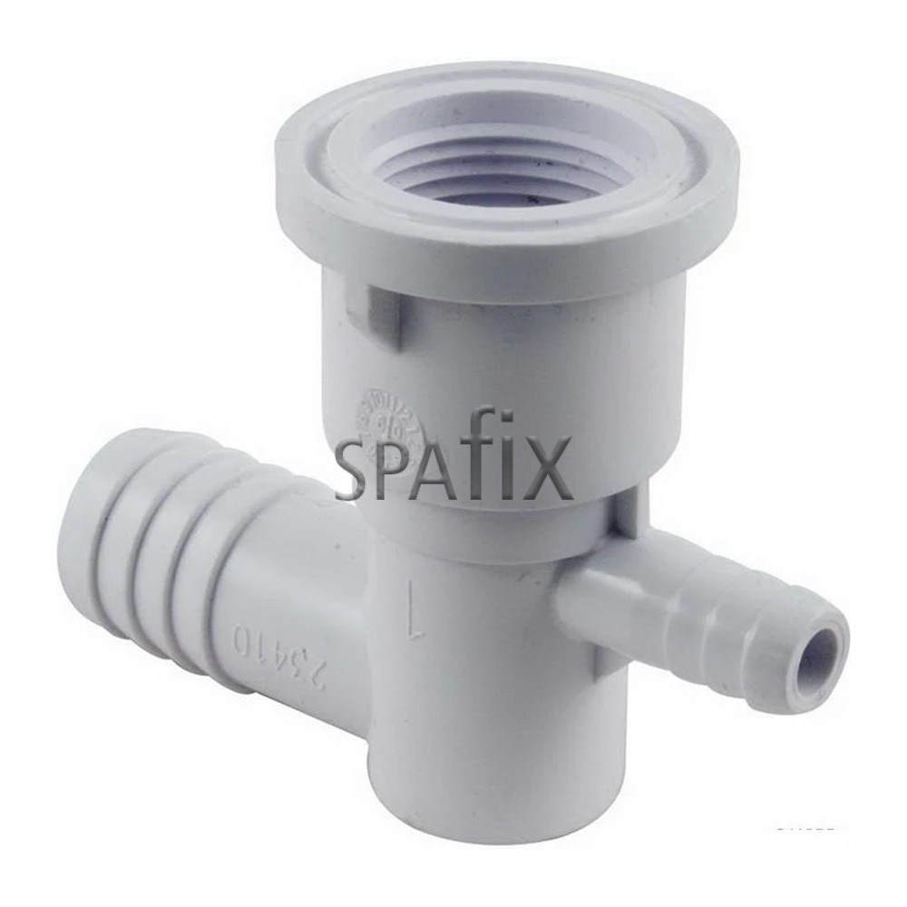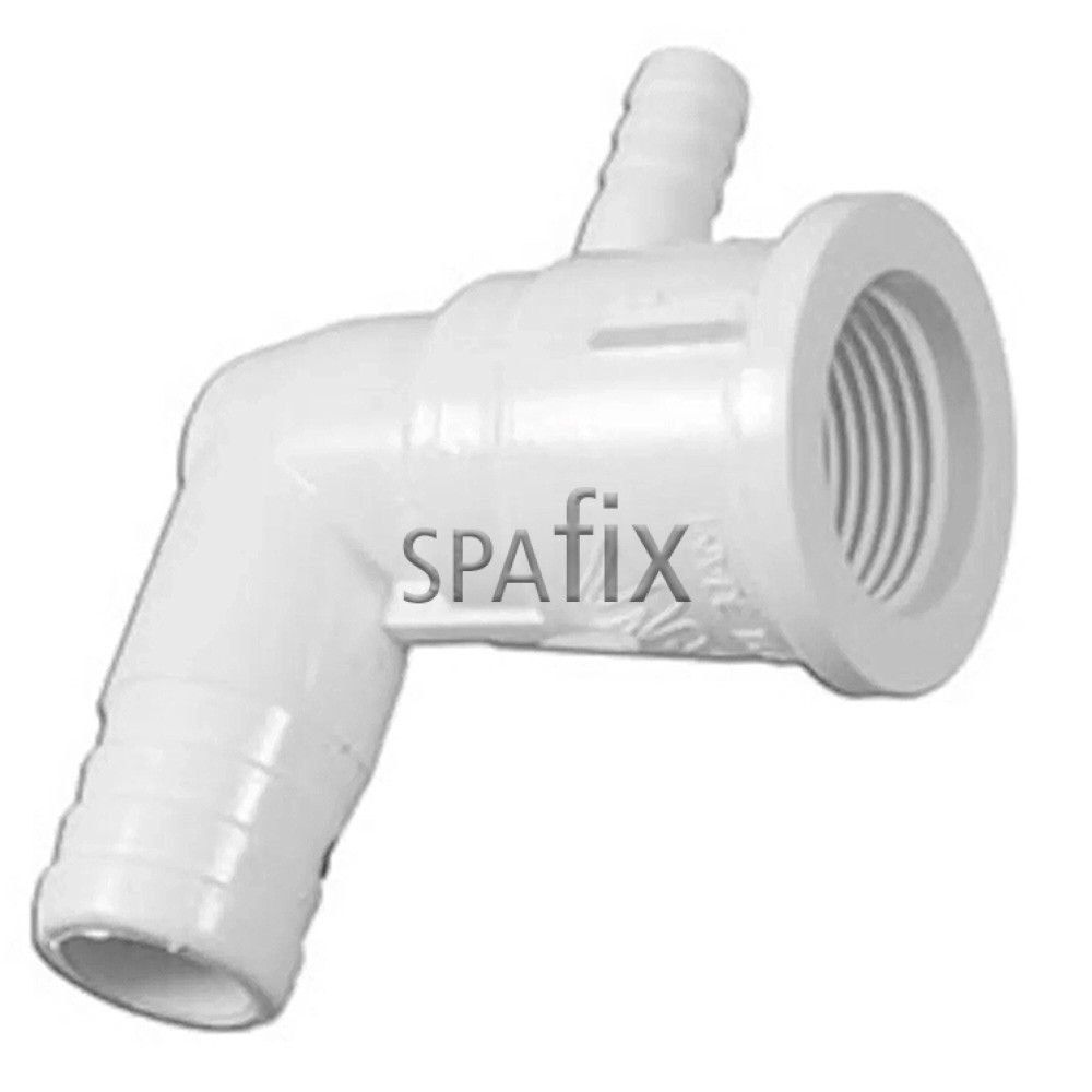 Waterway Cluster dyse Ell fatning forbinder til 3/4-tommer flexslange, og har en luftindtag for 3/8-tommer slange til luft, som suges ind af Venturi-effekten. Du kan skrue enhver Waterway Cluster dyse ind i fatningen, inklusive Cluster Roto, på Cluster dyse Ell fatning.