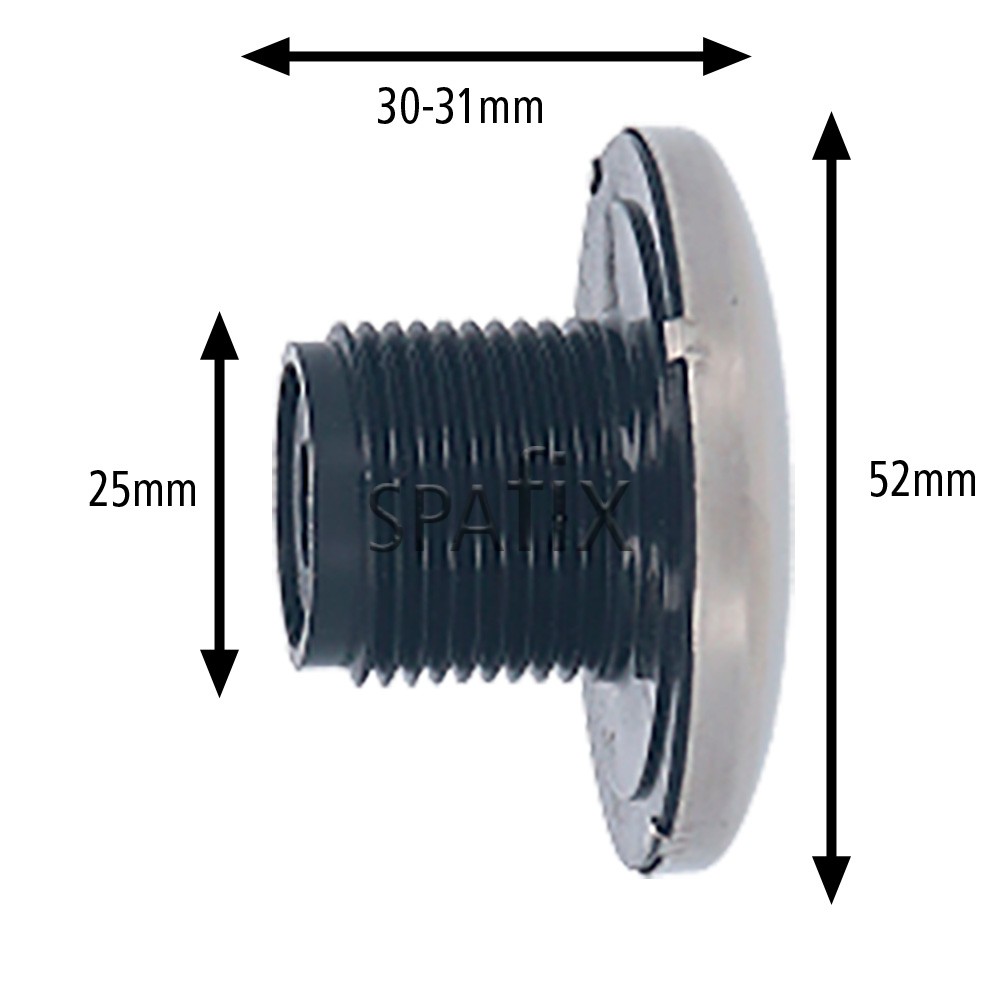 Waterway Cluster dyse rustfri stål 52mm bruges af flere spaproducenter. Den skrues direkte ind i sin fatning med en unbrakonøgle (prøv ikke med andet).