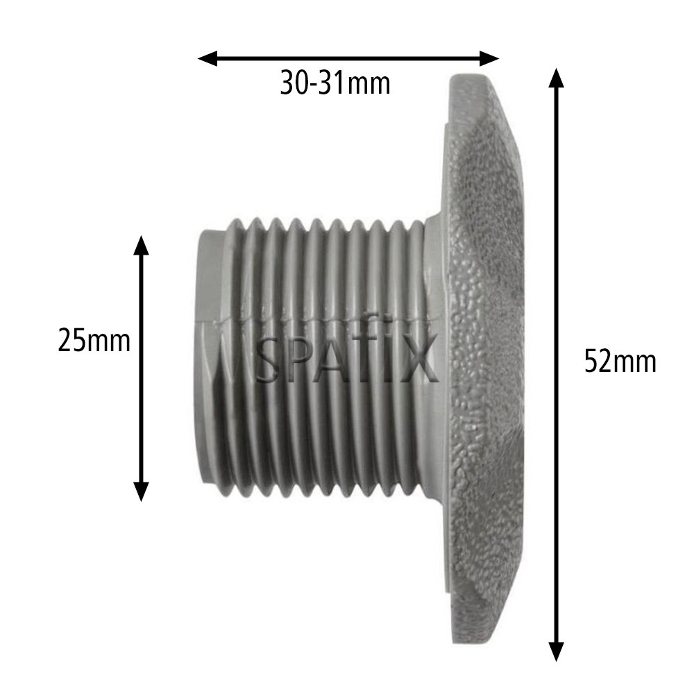 Waterway Cluster dyse textur grå 52mm bruges af flere spa producenter. Den skrues direkte ind i sin fatning med en unbrakonøgle (prøv ikke med andet).