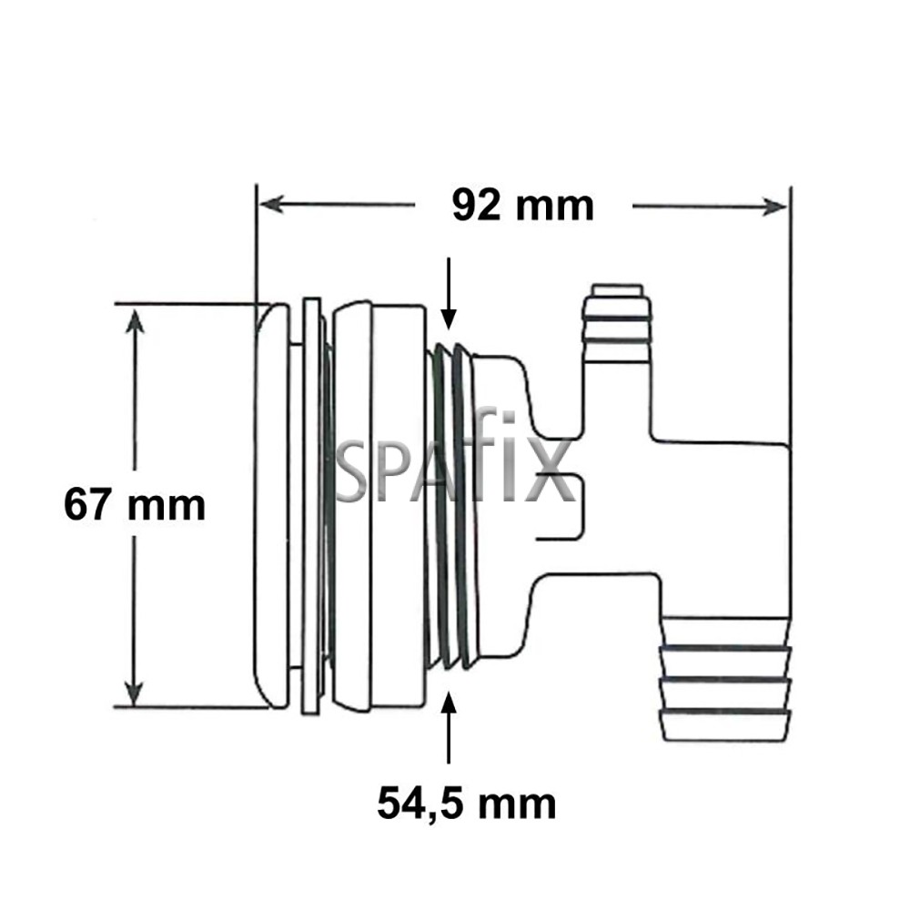 Diameteren af hullet i spa-skallen afhænger af gevindets udvendige diameter. For en Mini Storm fatning vil den være 55 mm, hvis du bruger den flade pakning (medfølger) og 58 mm for brugen af ”U”-pakningen.