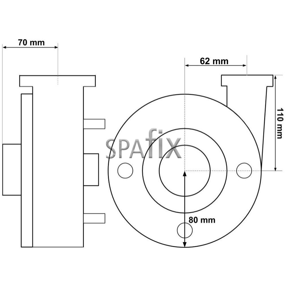 Denne pumpe er normalt forbundet til 2-tommers rør (60mm).