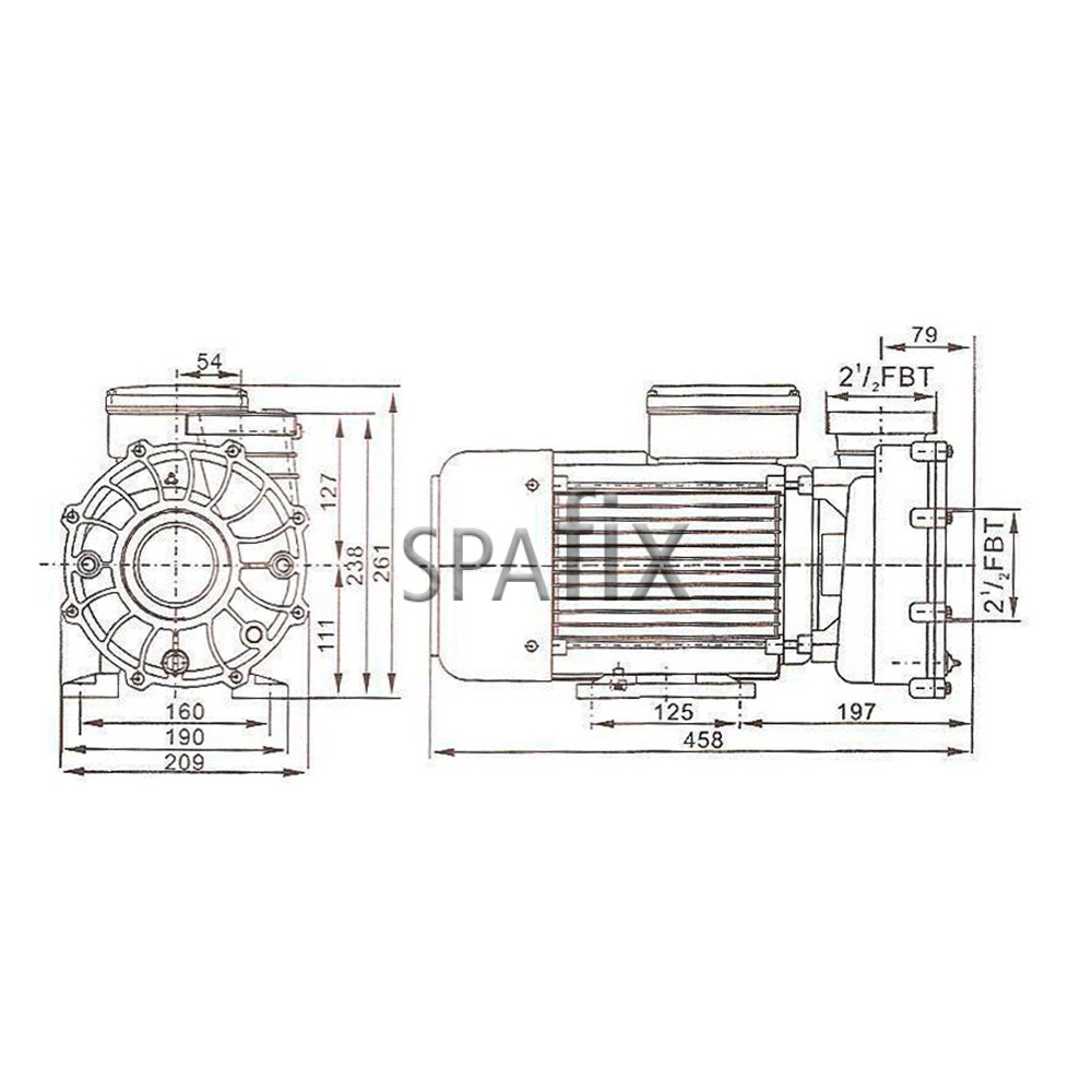 Waterway Viper pumpen har samme motoreffekt og gevindstørrelse som WP500-II og nogenlunde lignende dimensioner. Bemærk venligst, at hvis du ønsker at udskifte din pumpe med en anden model, skal du kontrollere pladsudnyttelsen og fastgørelses afstandene, da justeringer af rørtilslutningen kan være nødvendige. Retningen af WP500-II våde ende kan ikke ændres.
