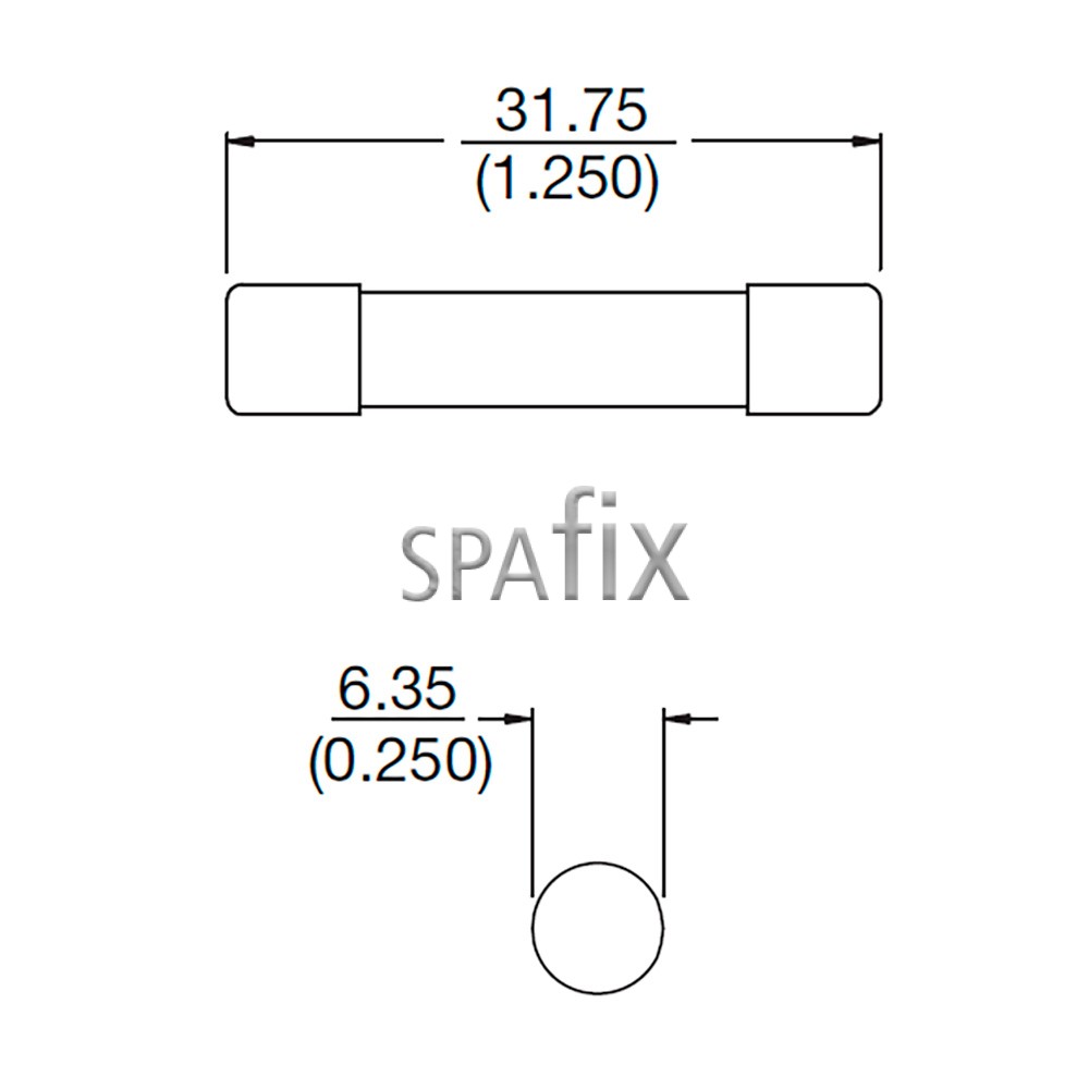 Denne 250mA sikring til 250V anvendes i mange spa-kontrolsystemer, herunder modeller fra Gecko og Balboa. Sikringen monteres normalt direkte på hovedprintet og beskytter systemets lavspændingsdel.