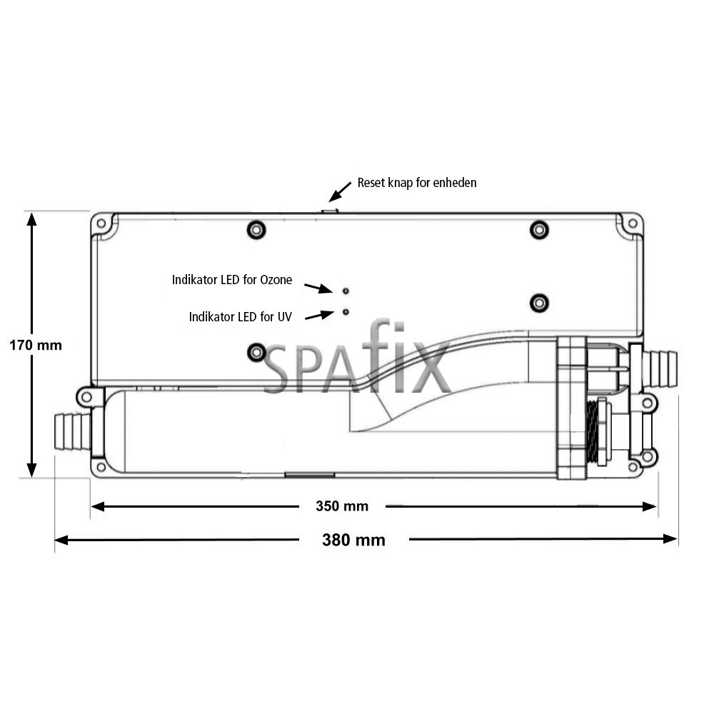 Del AOP (AquaNova) UV-C og Ozonator system er en kombination af ozonator og UV-C desinfektionssystem med et indbygget venturi-indsprøjtningssystem. Den er effektiv til spabade og pools med en volumen på op til 20.000 liter.