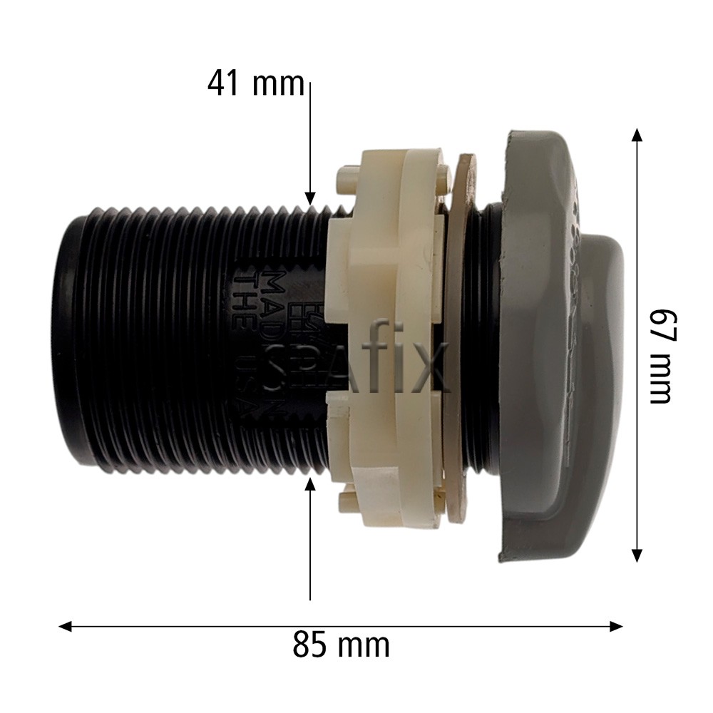 Waterway luftkontrolventil 1″ med ON/OFF True Seal forbindes til en 1″ slange/rør/fitting, og giver dig mulighed for at styre lufttilførslen til dyserne og dermed massagens styrke.