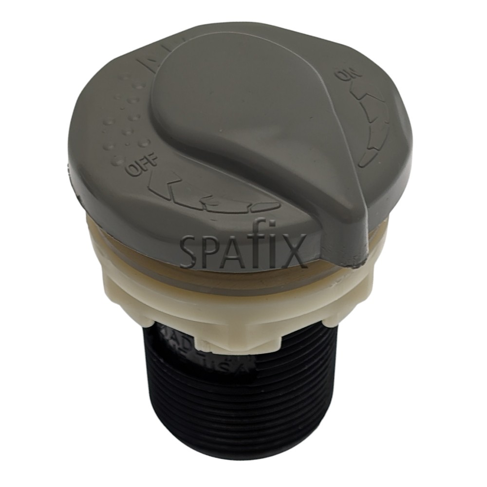 Waterway luftkontrolventil 1″ med ON/OFF True Seal er den varer vi her leverer i den glatte stil som vist på billedet, men fås i strukturgrå eller hakket stil (glat sort, glat grå (denne) og glat hvid).
