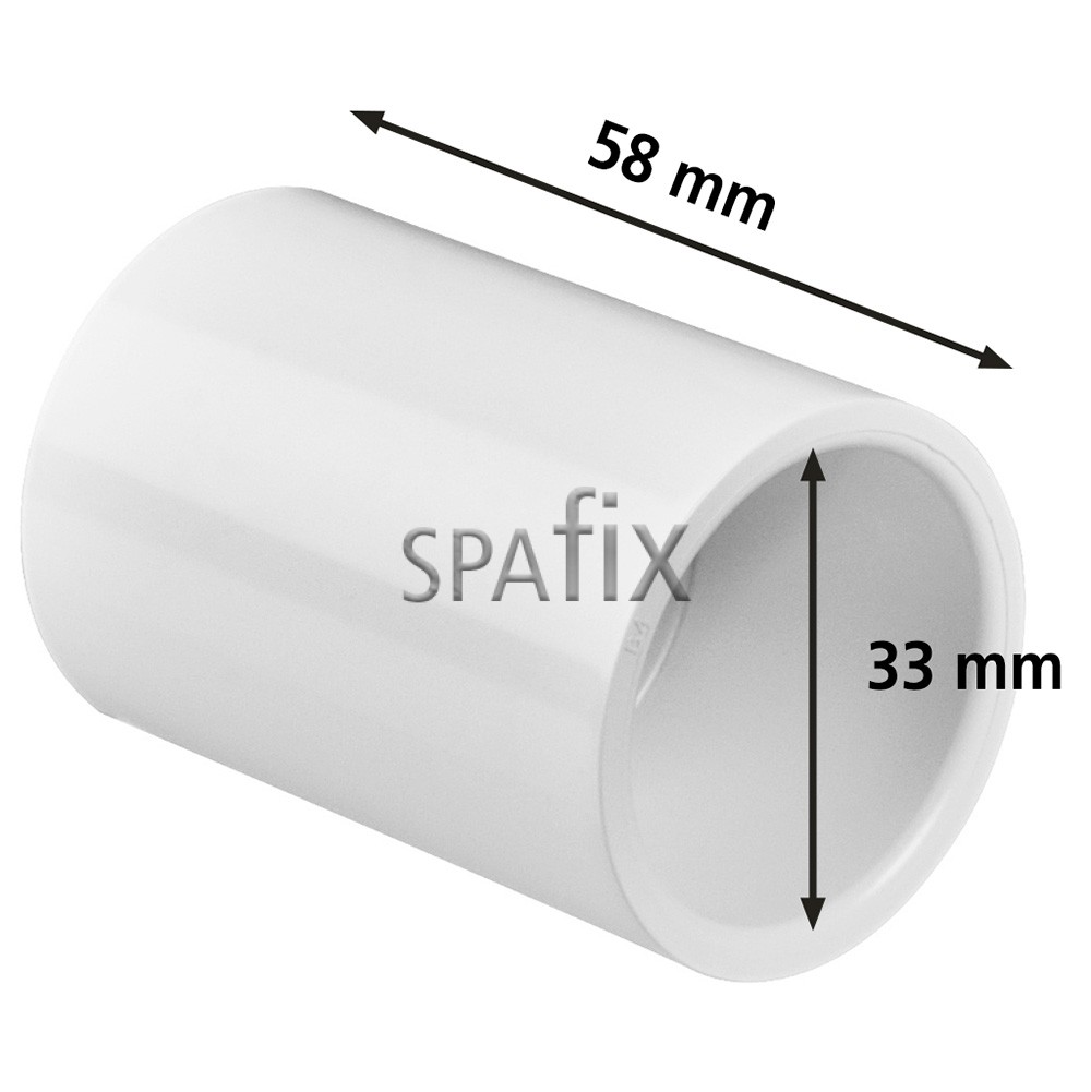 Denne lige kobling har to indvendige (female/socket) ender og bruges til at forbinde to 1″ rør i spa-, pool- og VVS-installationer. Den er lavet af høj kvalitet hvid PVC og er modstandsdygtig over for både højt tryk og kemikalier.