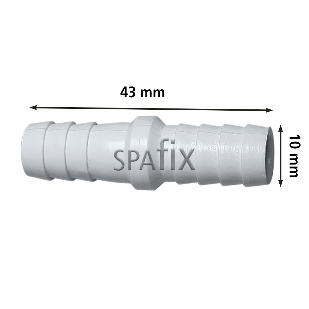 For optimal tæthed anbefaler vi at bruge lim og spændebånd (f.eks. metalclips), når koblingen monteres i slangen. Den ribbede overflade giver ekstra friktion, så slangen holdes sikkert på plads.