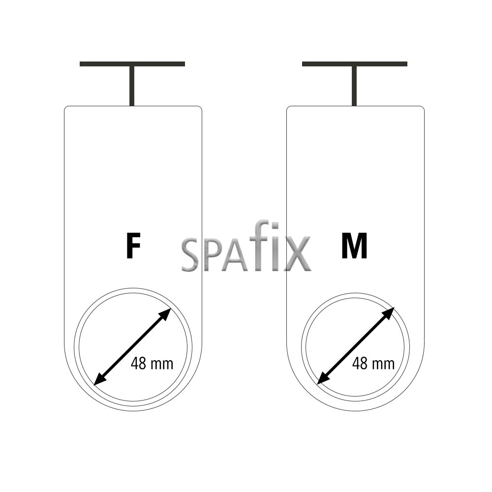 Tilslutning højre side (hun): Ø48 mm indvendig