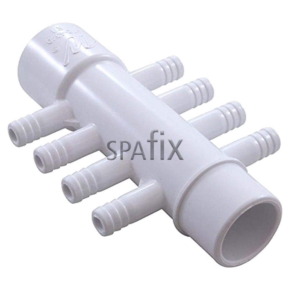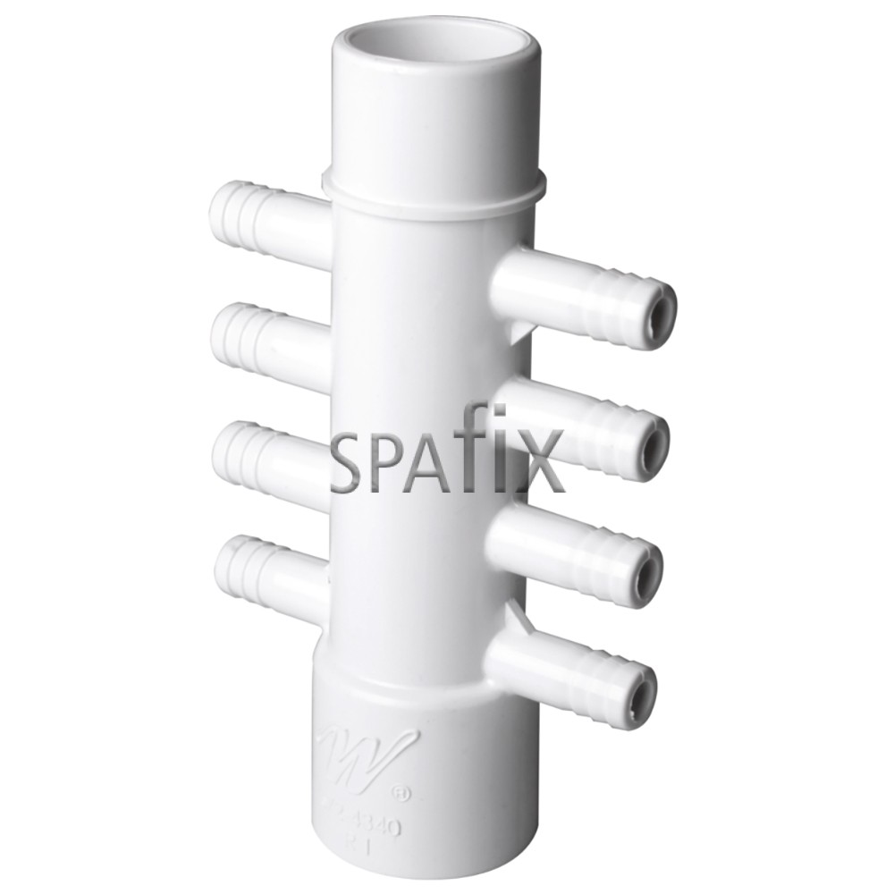 Denne højkvalitets (Schedule 40), højtryks ABS-plastikforbindelse giver dig mulighed for at forgrene en 1-tommers rør eller slange med indvendig diameter på 33 mm til 8 x 3/8″ luftslanger med indvendig diameter på 11mm.