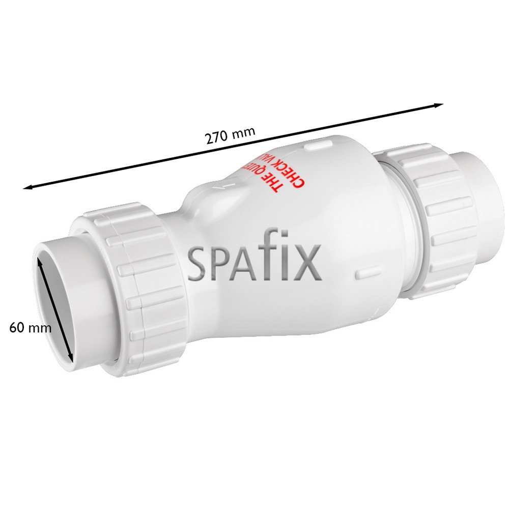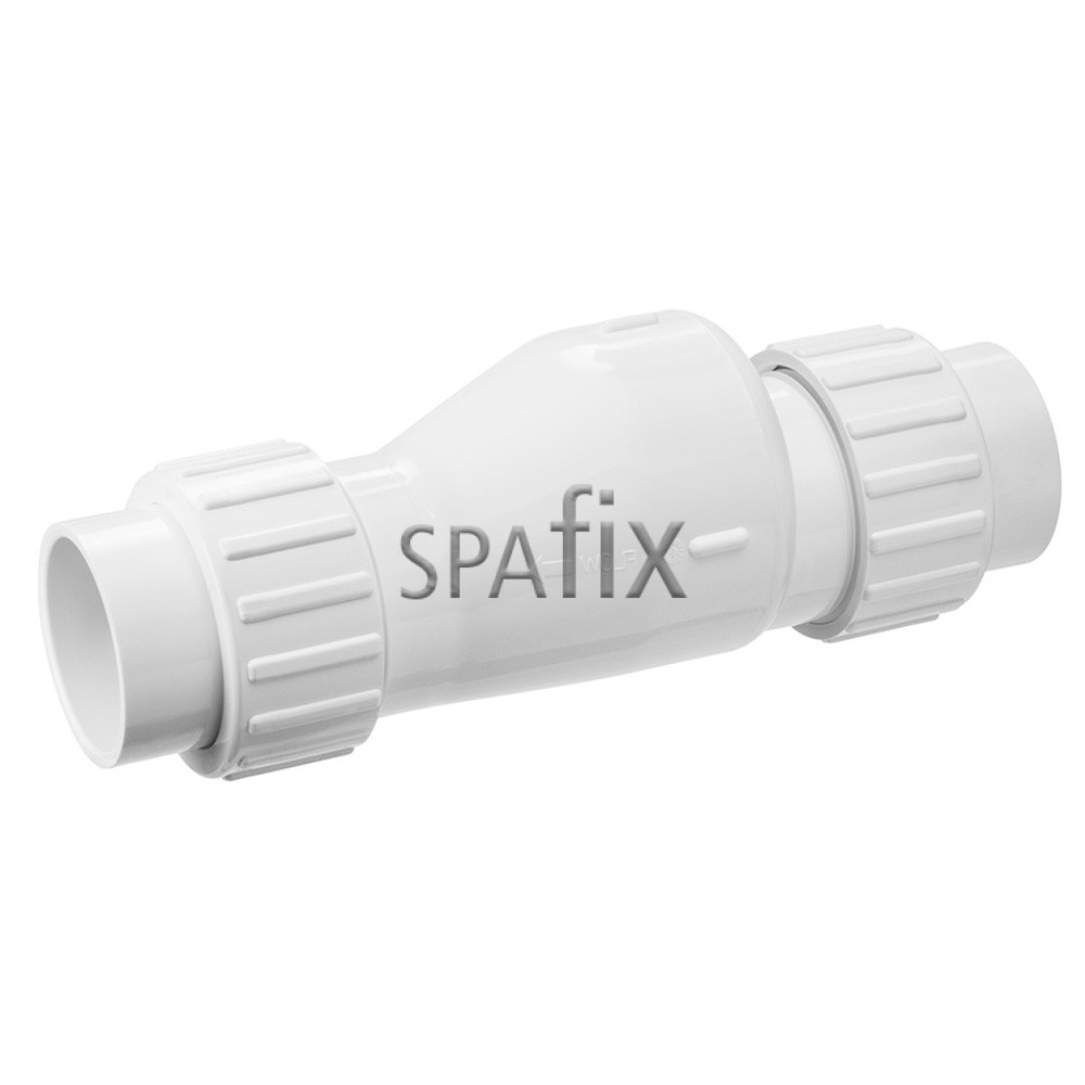 Ventilen er udstyret med gevindsamlinger (koblingsunioner) i begge ender, så den nemt kan afmonteres og renses, hvis blade, hår eller andet snavs sætter sig fast. Det gør den ideel til spa- og poolinstallationer, hvor adgang og vedligeholdelse er vigtigt.