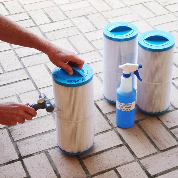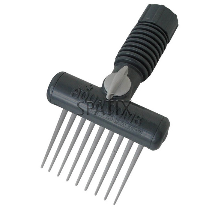 Aqua Comb er produceret i USA. Den tilsluttes en almindelig vandslange med lynkobling. De 9 plast”kiler” skubbes ind mellem fiberlamellerne i dit filter mens vandet skylder urenhederne ud. For mest effektive rengøring anbefaler vi brug af Spacare Filtercleaner forud for rengøringen. Det vil blødgøre det snavs og skidt som kan ligge dybt inde i filterets lameller.