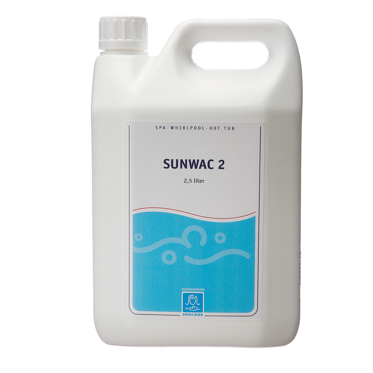 SpaCare SunWac 2 – 2.5 liter – er et rengørings- og desinfektionsprodukt til rengøring af spabades skjulte rør- og pumpesystem og til desinfektion af selve karret.