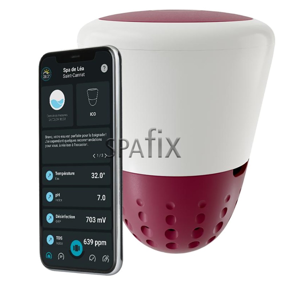 Meget nem at konfigurere og bruge, ICO Spa Wifi forbundet vandtester fra det franske mærke Ondilo forbinder sig til dit hjems WiFi. Den måler autonomt og kontinuerligt kvaliteten af ​​dit spavand ved hjælp af dets ultrafølsomme sensorer: temperatur, pH, desinfektionsmiddel og evt. saltniveauer.